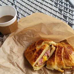 Wanted a quick breakfast this morning before I headed out of town and stopped by here! We were able to just drive up to the place and order, which was very convenient since it was raining. I ordered the Veggie Delight on a bagel. Overall it was a good sandwich, but I thought the bagel was slightly hard. Nothing special, but enjoyed the simplicity. Prices were also not too bad. I would give the sandwich a 3.5/5 but would definitely try it on a croissant next time! Regarding service, they definitely deserve 5 stars. They came up to our car and handed us our food while it was raining, which was very nice of them!